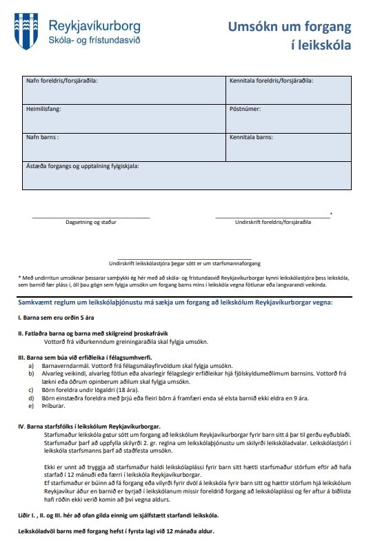 Eyðublaðið það þarf síðan að senda á innritun.leikskola@reykjavik.is