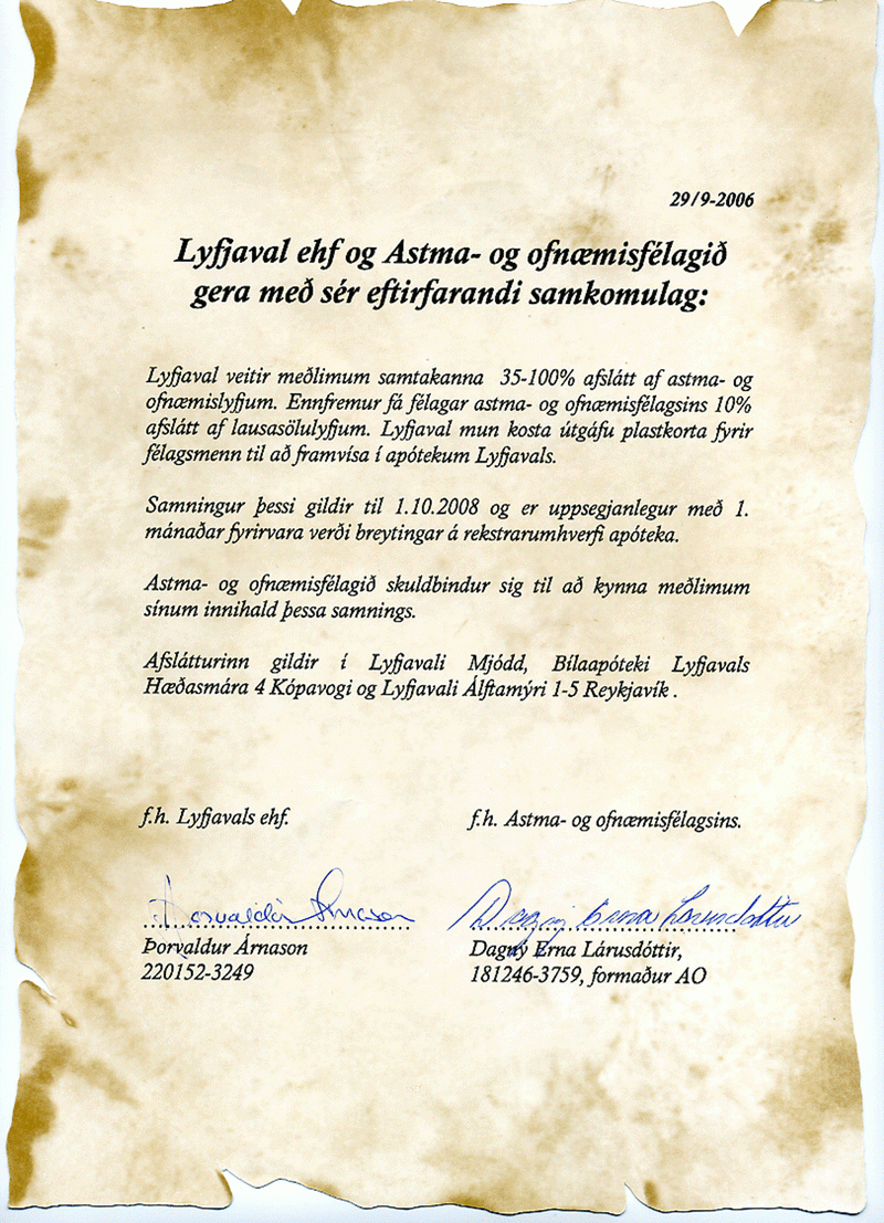 Lyfjaval ehf og Astma- og ofnæmisfélagið gera samkomulag