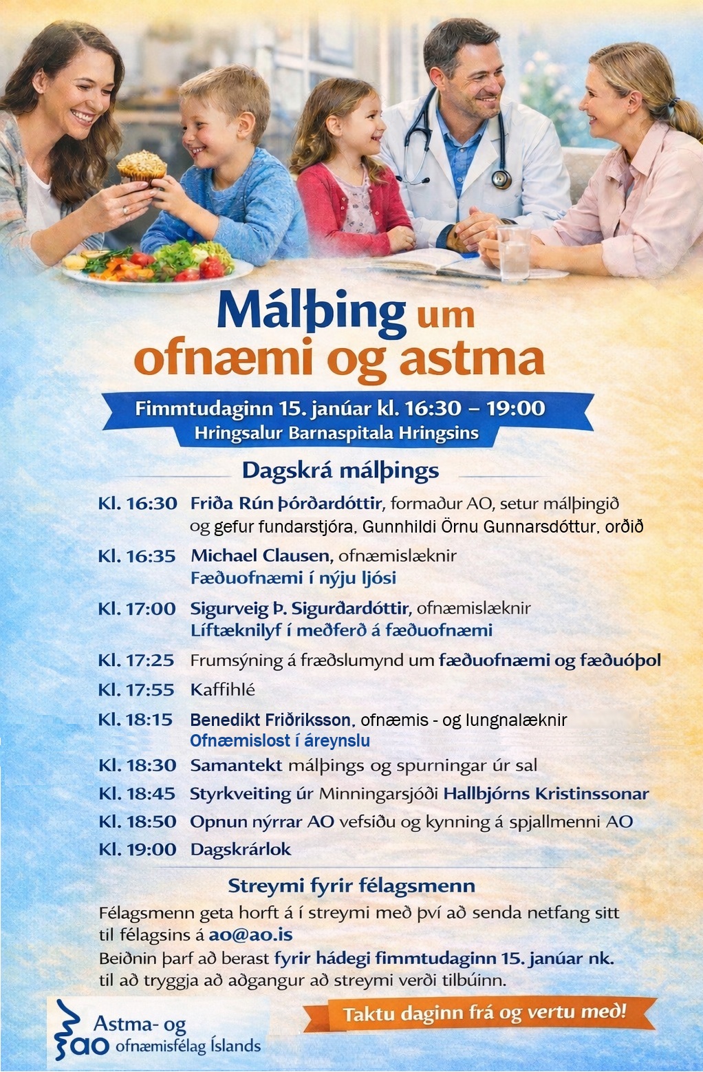 Fimmtudaginn 15. janúar nk. frá kl. 16:30 – 19:00 heldur Astma og ofnæmisfélag Íslands málþing í Hringsal Barnaspítala Hringsins