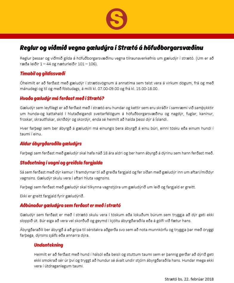 Reglur og viðmið vegna gæludýra í Strætó á höfuðborgarsvæðinu